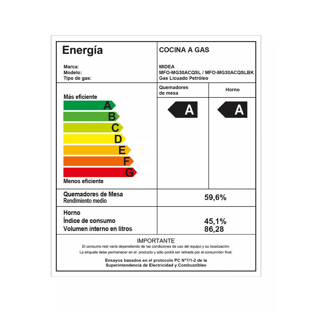 Eficiencia Energética: Horno: A |Cocina: A