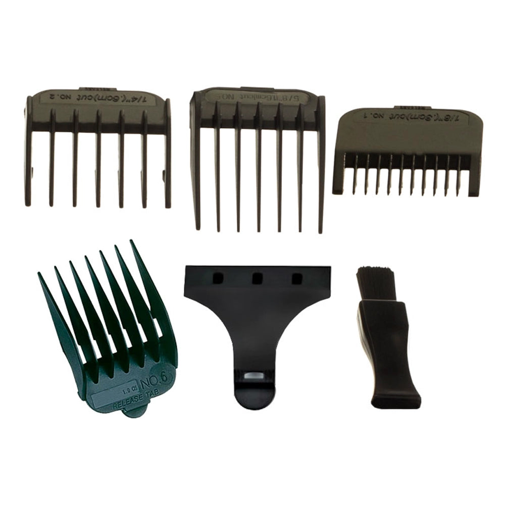 Incluye: Cortadora - 5 peines de alzada (3-6-9-12-20 m) - 3 peines (bigote, barba y cabello)