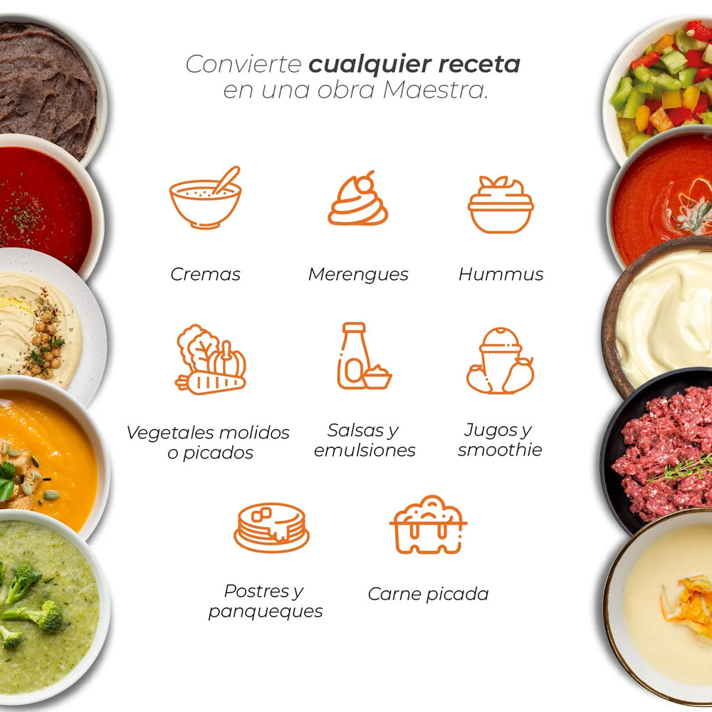 Funciones: Batidor, Vaso Triturador, Mezclador, Vaso Medidor