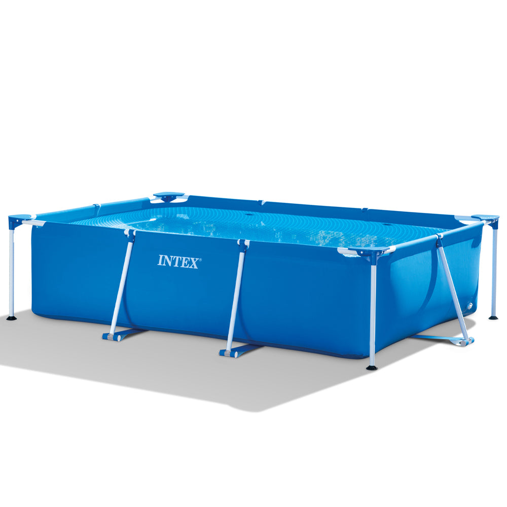 Piscina Small Frame rectangular INTEX, medidas 300x200x75 cm y capacidad de 3.834 litros, con conexiones de Ø32 mm para filtros con tubos del mismo diámetro.