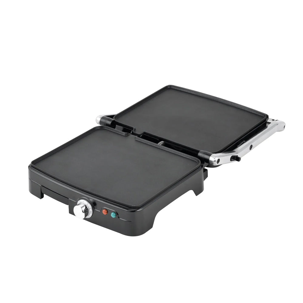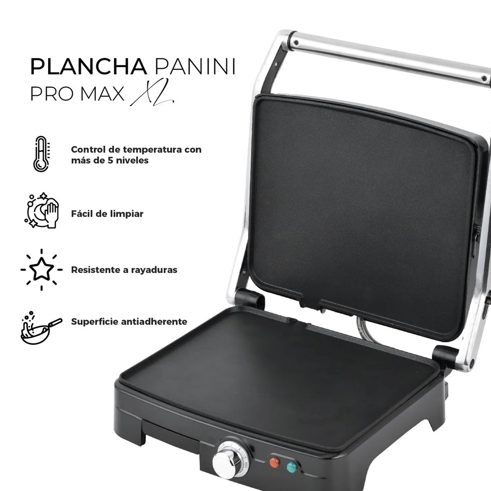 La Plancha Panini Pro Max XL combina versatilidad y diseño profesional. Con control de temperatura de más de 5 niveles, superficie plana antiadherente y resistente a rayaduras, ofrece resultados perfectos en cada preparación. Su diseño giratorio de 180° permite usarla como parrilla plana, ideal para cocinar hasta 4 sándwiches grandes o múltiples recetas a la plancha. Fácil de limpiar y altamente duradera, es perfecta para paninis, carnes, vegetales y mucho más.